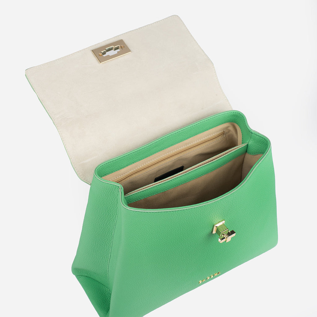 Crafted from genuine leather, IRIS is a true fashion sensation. This versatile model is designed for everyday use, featuring both a short and long handle and a secure buckle closure. Its spacious interior boasts multiple compartments, including a phone pocket and a zipped pocket, ensuring organized storage. With its distinctive silhouette, IRIS is the perfect urban accessory to elevate your look for both work engagements and leisure activities. Complete with an additional external back pocket and an extra long handle, it offers both functionality and style in one package.